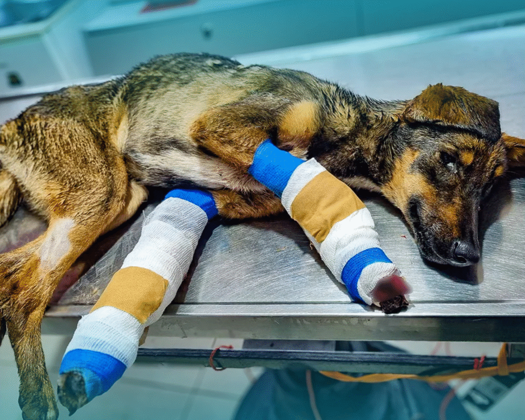 A brave K9 rescue dog, once abandoned on the streets, now receives loving care and treatment. His journey from pain to healing shows the true power of compassion and hope.